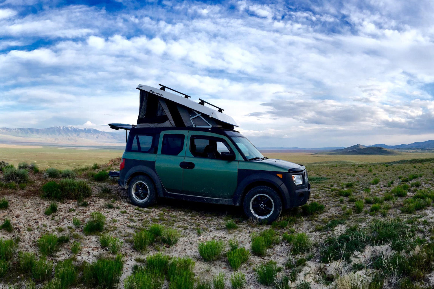 The original (and as far as we know only) Pop Top Conversion based on the Honda Element. Standing room, inside access and a loft bed that's over 6 ft long transforms this versatile SUV.